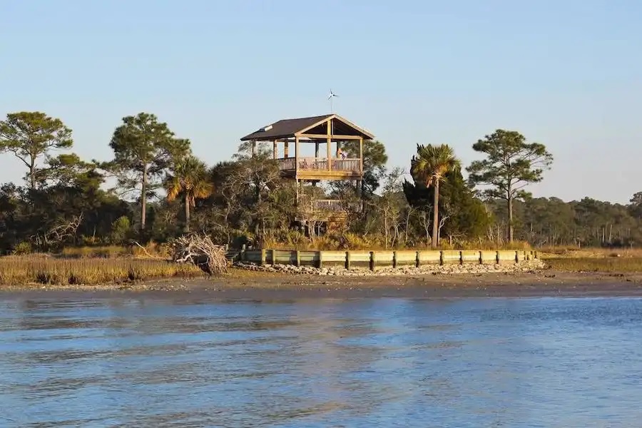 This secluded retreat, just a short boat ride from Hilton Head Island, provides an off-grid experience for adventurers.